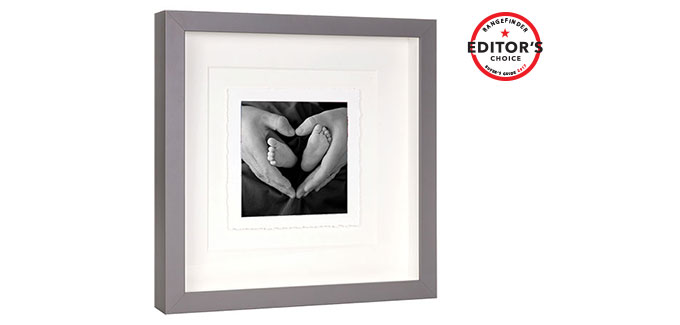 Following the philosophy that small is beautiful, H&H’s Classic Modern Frame creates the perfect combination of a small print offset by a shadow-box-style presentation. Your image is printed at 6 x 6 inches centered on a 7 x 7-inch piece of fine-art watercolor paper. To add to its fine-art look, the print features hand-torn edges. Surrounded by a white-on-white mat, this tiny print is showcased in a 2.25-inch deep glass-fronted black, taupe or white frame. Continuing the square format throughout, the frame measures 14.5 x 14.5 inches for a perfect finish. The Classic Modern Frame makes a wonderful gift for your clients or a value-added option for wedding and portrait packages.