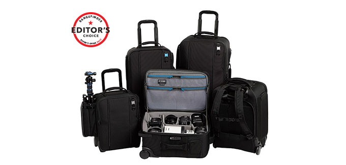 All of the models in Tenba’s Roadie line offer water-repellent nylon exteriors, YKK zippers and aircraft-grade aluminum luggage handles. They have drop-in tripod carriers and an extra bag strap that lets you attach a second bag to a Roadie. When opened, interior straps can keep the lid upright so you can access your gear without having to prop open the lid yourself. All of the wheels on the Roadie bags are user-replaceable. Most models in the line, with the exception of the Roadie 18, include a removable camera insert that holds a camera and up to three lenses so you can leave the Roadie behind if you don’t need your full kit.