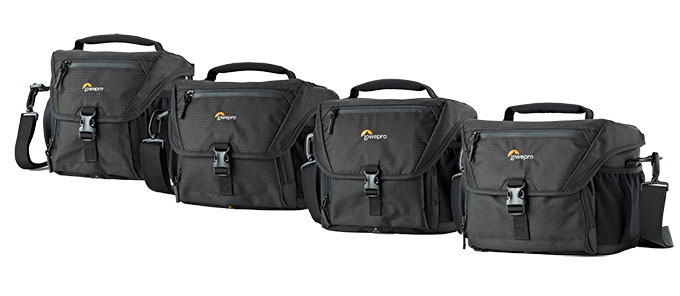 These shoulder bags are sized to accommodate anything from a single body and lens up to a full-frame DSLR body and four or five lenses. They feature an All Weather cover and waterproof zippers to keep the interior safe from the elements. The shoulder strap is adjustable and removable, and there’s a belt loop if you want to thread the smaller version around your waist. You’ll find adjustable foam dividers inside the bags.