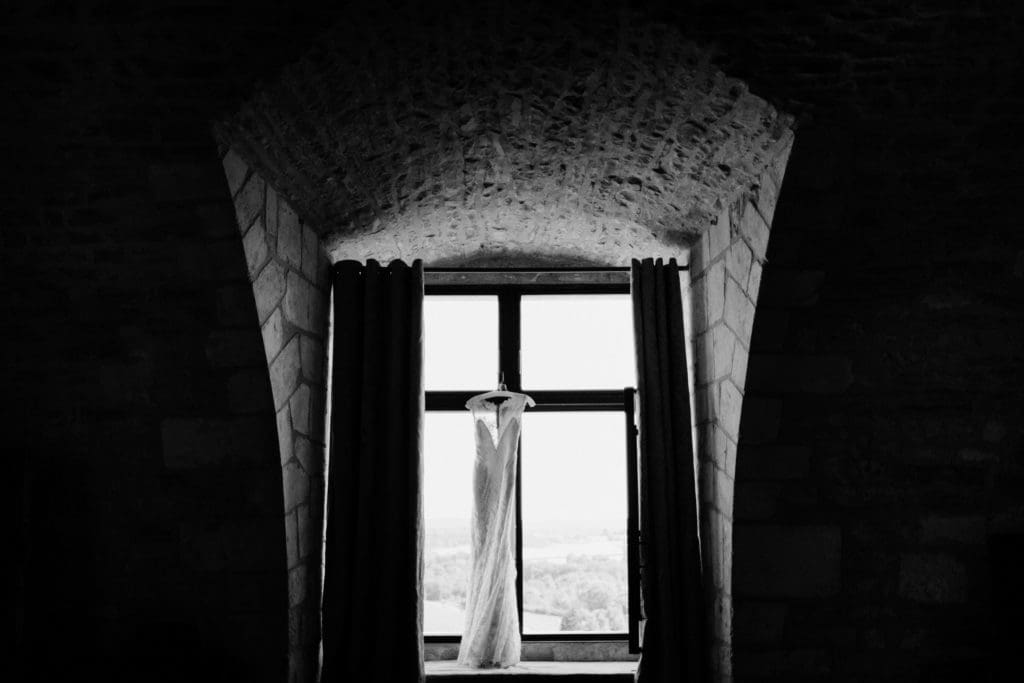 When we arrived to this location, we were in awe. It was a stunning old château in France and it’s still one of our favorite weddings we ever photographed, the one that changed our perspective on the true documentary approach to wedding days. After we photographed the dress in another room and gave it back to the bride, she hung it on this window that was open in her bridal suite. She didn’t mind that outside there was a direct drop to the valley below, since the château sits on top of a hill, nor the strong breeze coming from the window, and she went back to doing her makeup. We would be lying if we said that the thought about the dress falling down the cliff didn’t came to mind, however the breeze moved the dress in the most perfect way that gives this photo that extra something. We have yet to photograph a dress that would exceed this moment.