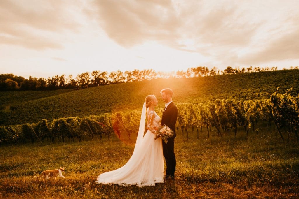 The clouds opened for about 15 minutes with the most gorgeous light above the endless vineyards of this venue. This would have been just a pretty sunset photo, however out of nowhere, the venue’s cat came walking slowly into the frame and made it that much better. He didn’t stop there, actually: He caught a mouse a minute after this photo was taken and ate it at the edge of the vines. He wasn’t bothered and didn’t want to go away, so we just rolled with it and kept shooting.