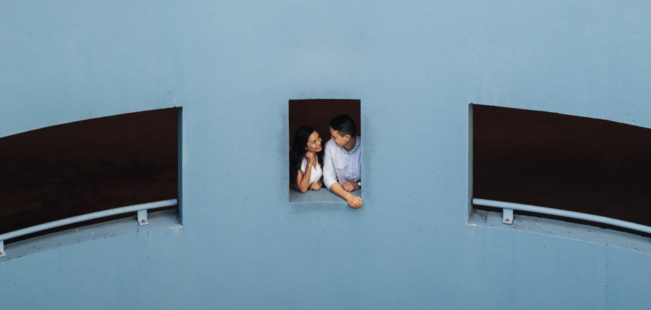 Vancouver-based photographer Nhi Le has two brands, one for weddings (Noyo Creative) and one for architecture (Highline West). Specializing in these two, he says, “provides a wonderful synergy,” as evidenced by the composition of this couple’s portrait, captured at a circular parkade in British Columbia.
