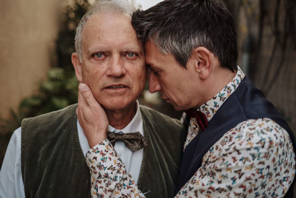 The photographer set up this pose, which draws equal focus to their connection and Patrick’s moving expression: “I think his eyes convey all of his past with a lot of shades. I found this really fascinating.”