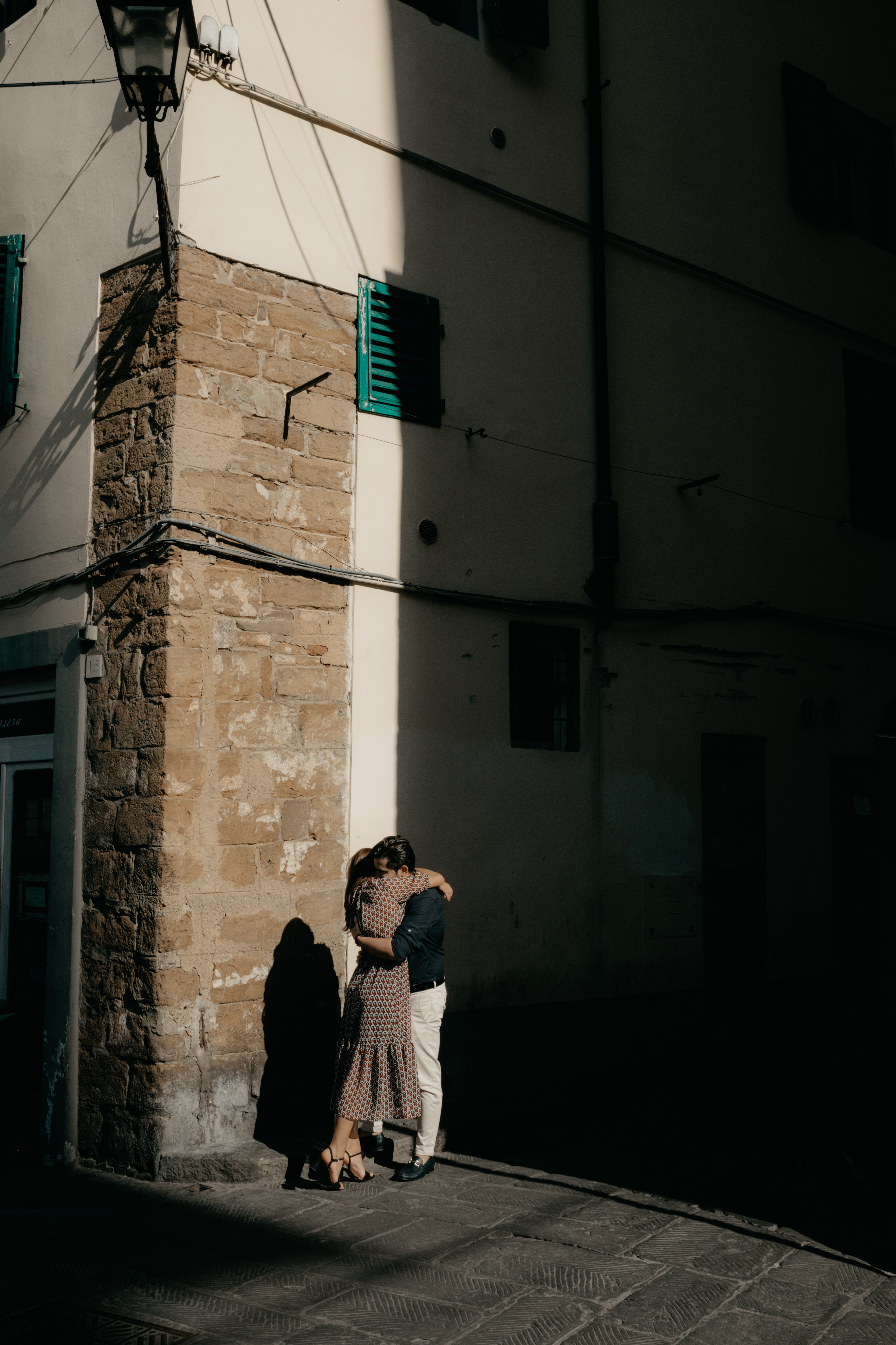 The whole world seems to stop turning for a moment in this frame as couple Luiza and Egli share an intimate embrace in a quiet corner of Florence. “They both come from different places—Luiza from Brazil and Egli from Albania—but they call Florence home together,” explains photographer Courtney Lee Miener of Courtney Lee Photography in St. Louis.