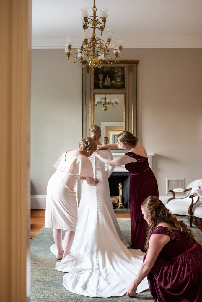 “I told them to continue to make sure that everything was in the right place,” she explains. “They were all very meticulous on making sure that every button was in place, and I adored watching them make sure that their bride looked perfect.”