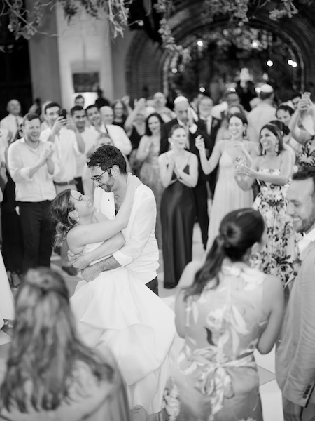 “Nothing says ‘love’ more than a newlyweds’ kiss,” says photographer Mariana Barbosa, one of Rangefinder’s 30 Rising Stars of 2024. In this shot, one of her favorite candid wedding photos, Mariana had climbed onto the band stage in anticipation of this special kiss, which she knew would come near the end of the Hora – the traditional Jewish wedding dance.
