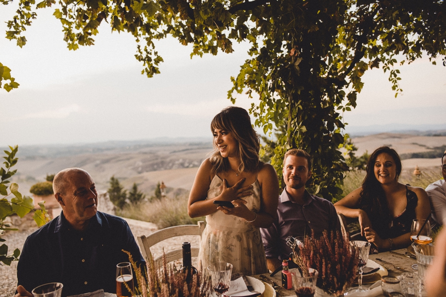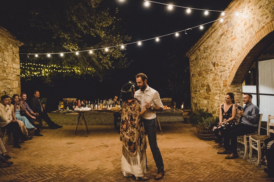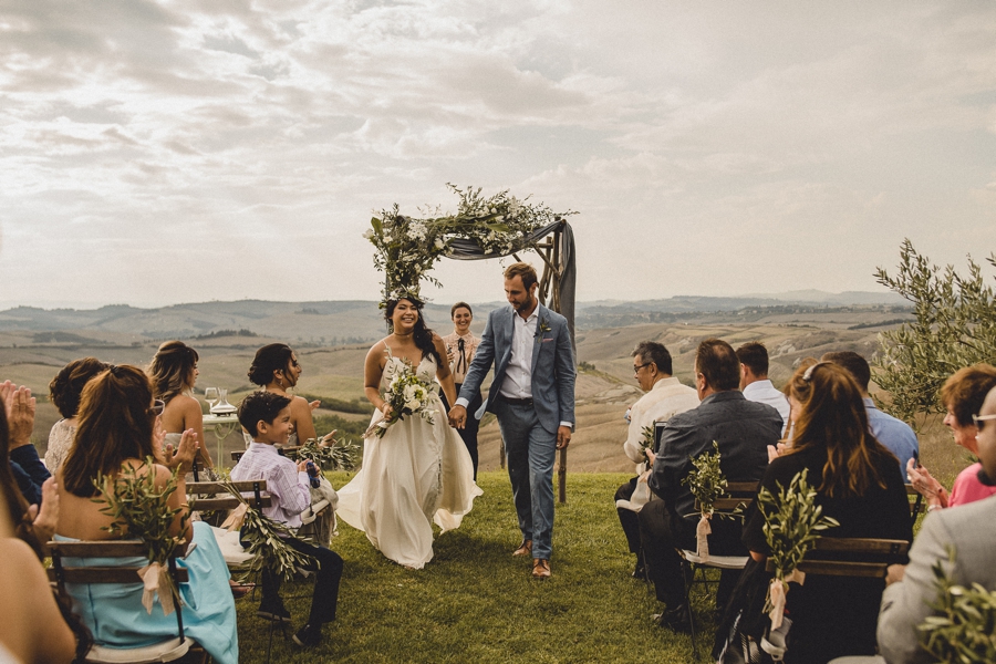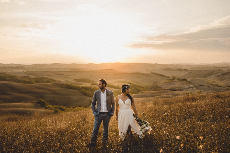Vancouver-based bride and groom Anna and Rick brought their closest family and friends to celebrate their boho wedding at The Lazy Olive, an enchanting Tuscan villa in Italy that included a ceremony overlooking the hills, followed by a sunset cocktail hour and a dinner under the moonlight.