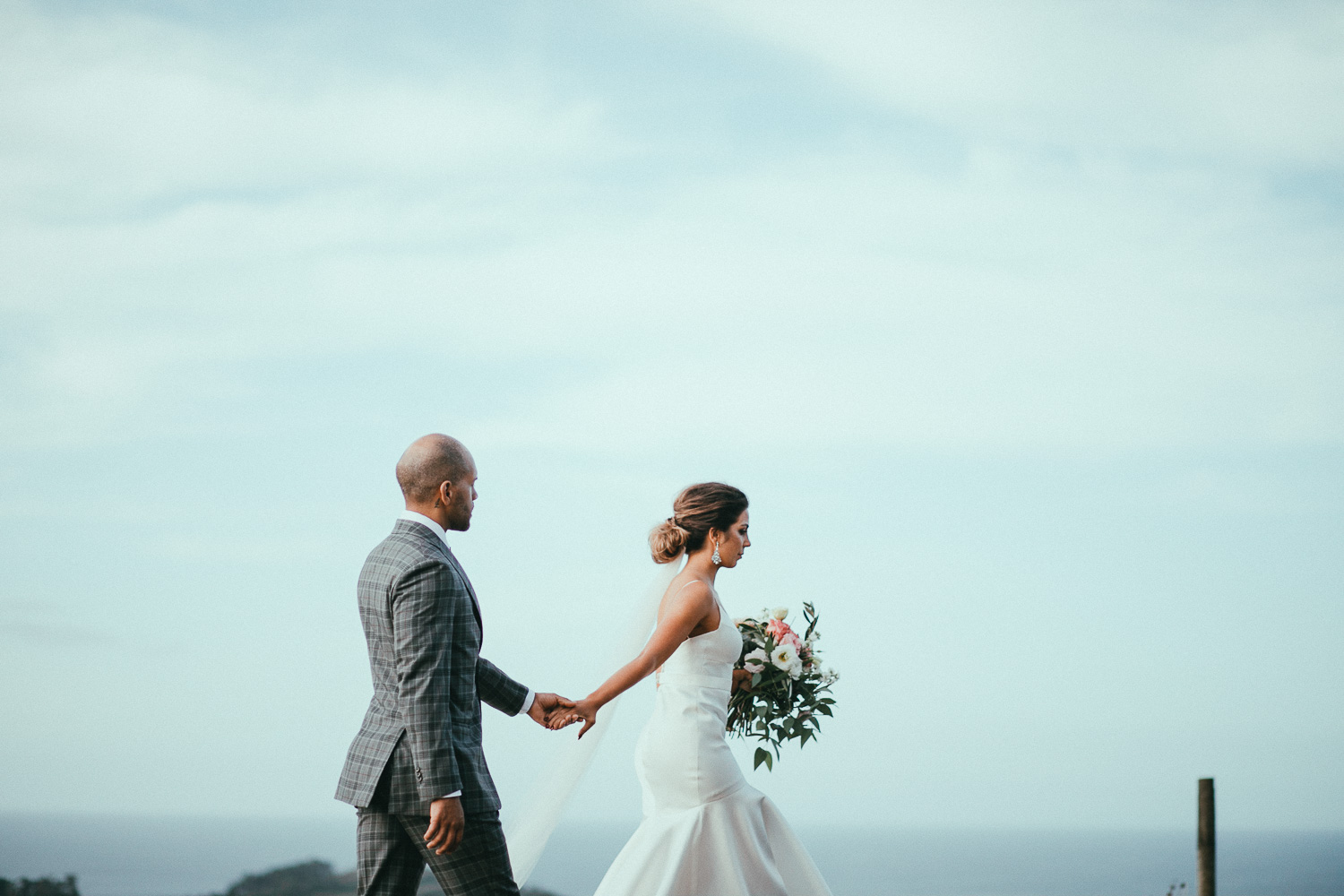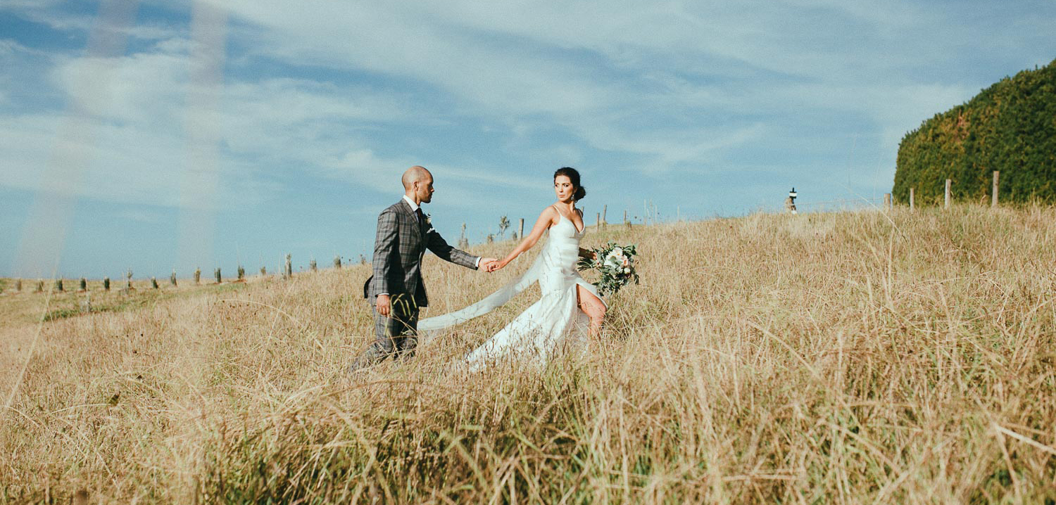 Before Sydney, Australia-based couple Kristina and Laurent tied the knot in New Zealand, Laura and Tommy of Lato Photography documented the loving couple’s engagement session on Waiheke Island. “We established a really great connection with this couple early on,” Laura explains. “We shot their engagement session in a very remote spot of the island, which is just 30 minutes by ferry from Auckland and has a very European influence, many vineyards and small, sunny beaches. For the wedding itself, they choose an amazing venue, Mudbrick vineyard, which is a well-known place for stylish weddings and a perfect spot for a romantic ceremony outside at sunset time, just above the wine cellar.”