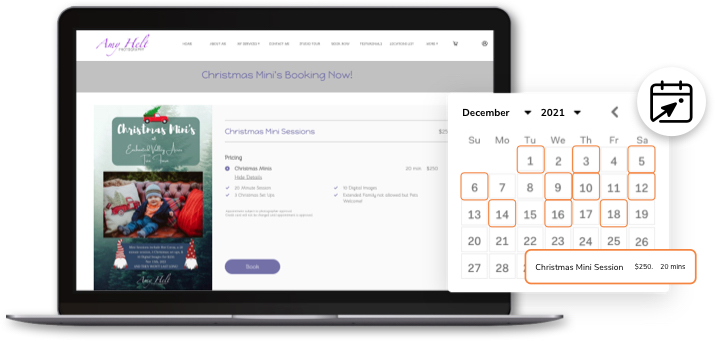 Helt added the Zenfolio BookMe feature to her site just before the holiday season. “I literally booked seven of eight mini-session slots right away,” she says. “With BookMe, right at the top of my website page clients could see what dates were available and all the details, and book and pay right there. Before, I had to send them a quote and wait for them to accept the quote and wait for them to pay. But with BookMe, it was like, boom—they already paid. I can even set how many downloads they have and what prints they get as part of the package. It actually creates a gallery for them from the very get-go, so once they book, the gallery is there with their email already entered. All I have to do is drop the photos from the shoot into their pre-configured gallery and everything else just happens. That’s awesome.”