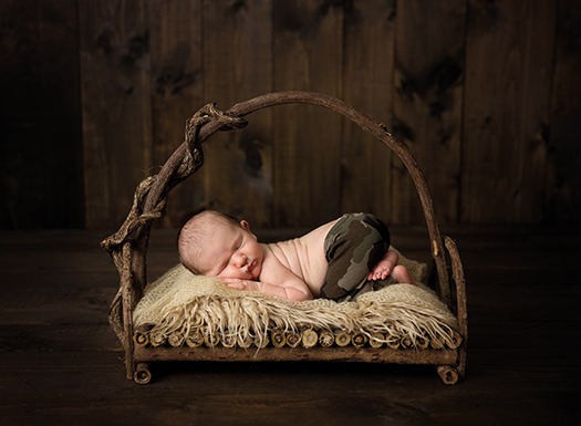 Mr. & Mrs. And Co. focuses on handmade backdrops and props, like the Branch Bed, made from real branches. It has a flat space that’s roughly 18 x 10 inches for a newborn to lay down on. It takes between one and three weeks to get it delivered to your studio.