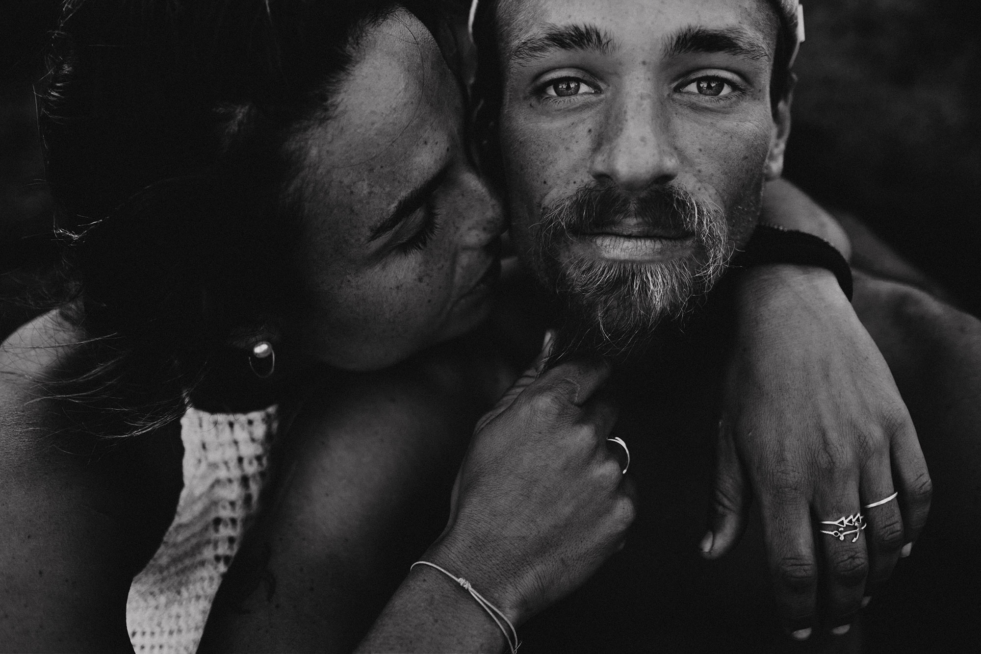 Photographers Don and Helen had a unique challenge with this engagement shoot for surfer couple Max and Giulia. As it turns out, Max, the groom-to-be, had never really been photographed before. “The first couple hundred images we have were taken as ‘warm up’ photos,” the photography duo explains. “We wanted to make sure that Max felt comfortable, so we let him cuddle his dogs and throw stones into the ocean. It was really important to assure the couple that they were doing an amazing job. This is a game changer and really boosted their confidence.”