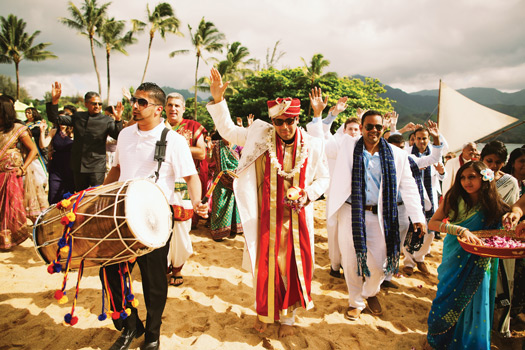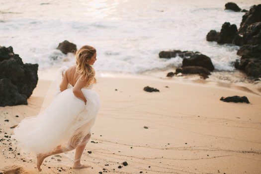 Anna Kim shoots a classic destination ceremony, and a bride running barefoot on the beach on the lush island of Kauai. Photo © Anna Kim Photography