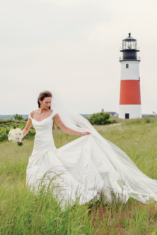 Zofia Crosby visits a lighthouse to shoot the quintessential New England portrait of a bride. Photo © Zofia & Co.