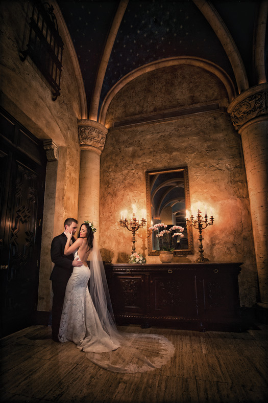 Mario Munoz Jr. of Munoz Photography uses a Lowel ID Light to illuminate this couple for their portrait at the Coral Gables Biltmore Hotel in Florida. Photo © Munoz Photography