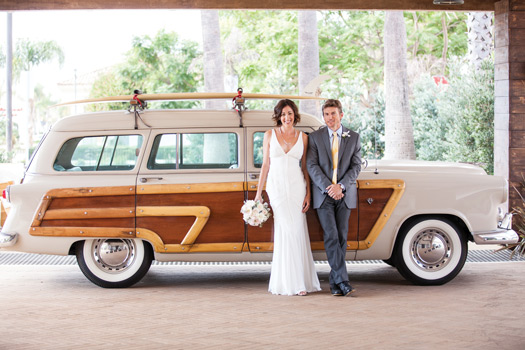 Photographer Melissa Musgrove captures the laid-back elegance of Santa Barbara destination weddings in these natural light portraits of a couple with a classic Ford station wagon. Photo © Melissa Musgrove Photography